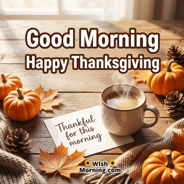 Beautiful Good Morning & Happy Thanksgiving GIFs bring a warm, festive start to the day with soft autumn colours and a gentle morning feel. These GIFs mix the joy of a fresh sunrise with the gratitude and togetherness of Thanksgiving, creating a cheerful and heartfelt morning mood.